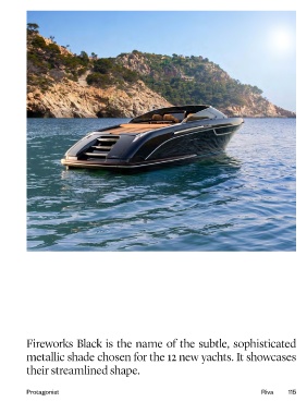 Fireworks Black is the name of the subtle, sophisticated metallic shade chosen for the 12 new yachts. It showcases their streamlined shape. Protagonist Riva 115